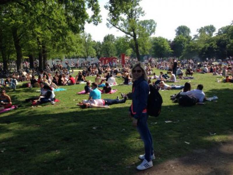 Küçücük Amsterdam'da, İstanbul'da bulamayacağınız büyüklükte bir park Vondelpark. İçine girdiğinizde gerçekten şehirden tamamen sıyrılabiliyorsunuz. Hem yürüyüş, hem bisiklet için ideal. Parkı gezerken en çok bu kadar kalabalık bir alan nasıl bu kadar huzurlu bir yeşilliğe sahip olabilir ve bunu nasıl koruyabilir diye geçirdik aklımızdan. Türkiye'deki gibi koca mangallar, devasa boyuttaki dumanlar, çimenlerin üzerine serilen koca kilimler, etrafta uçuşan çöp poşetleri yoktu : ) Alabildiğince yeşil bir alan, ağaçlar, çiçekler ve yüzlerce bisiklet... Bisikletlerinin önüne yerleştirdikleri kasalarda taşıdıkları yiyecekler, içecekler ve ufacık köz halde satılan alüminyum görünümlü 30-40 cm'lik tek kullanımlık mangallar... O kadar kalabalık olmasına rağmen kafanızı dinleyebileceğiniz kadar da sessiz.