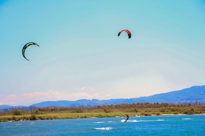 İşte bu ağaçların arasında denize doğru bakarken sol tarafınızda gökyüzünde renkli renkli çok büyük uçurtmalar göreceksiniz. Bunlar kite board uçurtmaları. Gökova Körfezi, eğer haritaya bakarsanız daha net görürsünüz, bir koridor şeklindeki yapısı nedeniyle yılın bahar aylarından sonbahar sonuna kadar bu koridor boyunca denizden karaya doğru düzenli şekilde rüzgâr alıyor. Kite board sporu için bu düzenli ve güçlü rüzgâr çok önemli, çünkü uçurtma şeklindeki sörf yelkeni rüzgâr olmadığında tabi ki sık sık yer düşüyor ve rüzgâr değişken olduğunda da sporun zevki kaçıyor. Kite sörfçülerin burayı seçmesinin bir nedeni de koyun bittiği yerden itibaren metrelerce çok sığ su olması. Bu da bölgeyi kite surf sporuna yeni başlayanlar için ideal öğrenme mekânı haline getiriyor.