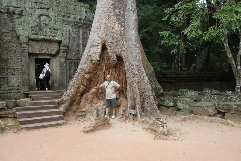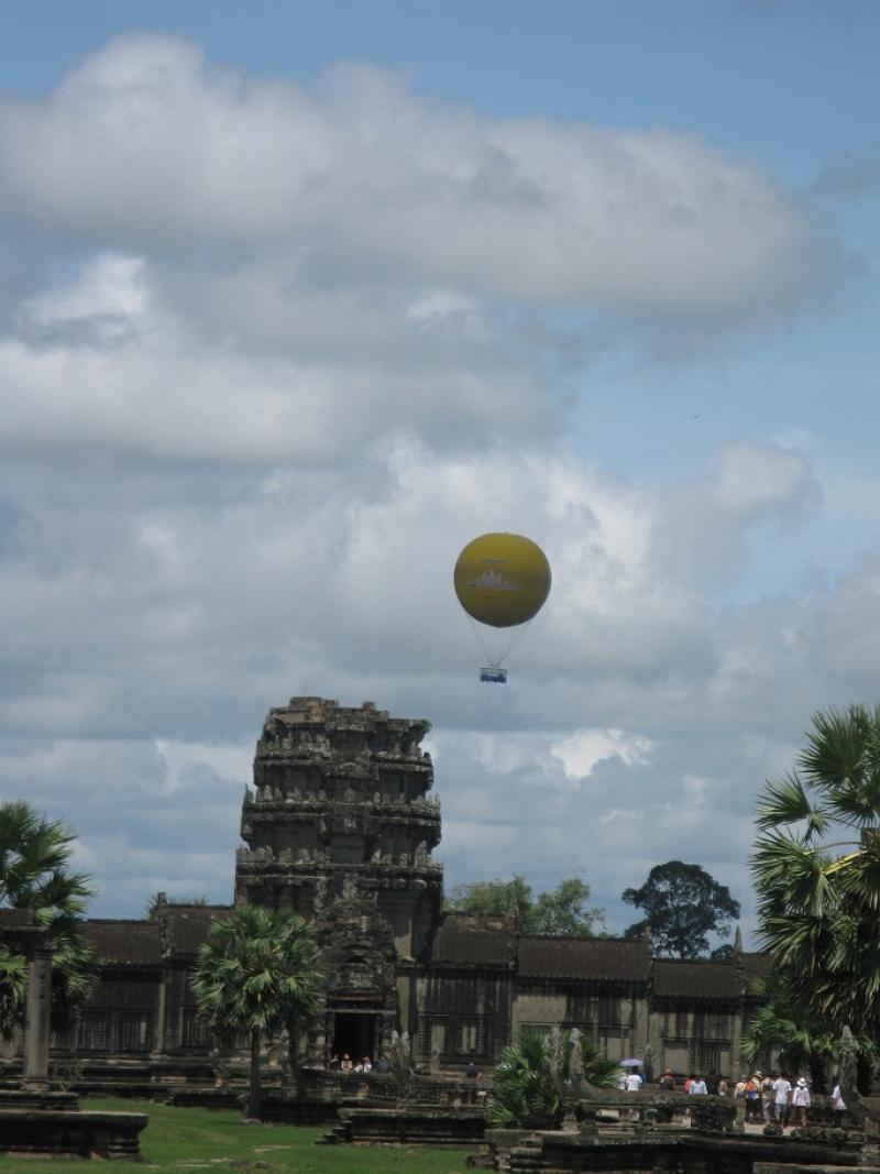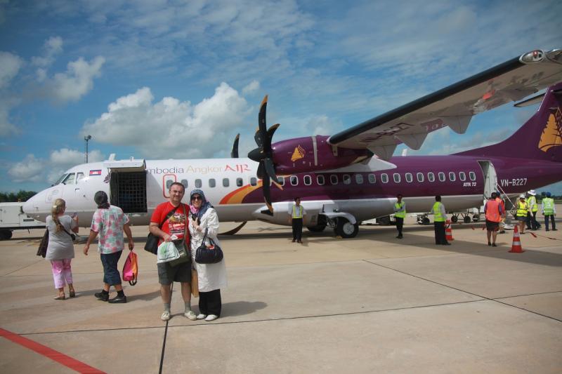 Siem Reap şehrine Vietnam’ın eski adıyla Saygon yeni adıyla Ho Chi Minh şehrinden havalanan Kamboçya Havayolları’nın küçük bir uçağıyla yaklaşık 1 saatte geldik, yol boyunca büyük nehirler ve yağmur ormanlarının üzerinden seyir eden uçağımız küçük ve sevimli havaalanına indikten sonra şehir merkezi yakınındaki otelimize yaklaşık yarım saatte vardık.
