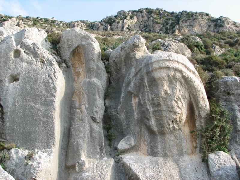 St. Pierre Kilisesi’nden çıktıktan sonra dağın eteklerinden yukarıya doğru patika bir yol çıkmaktadır. Genelde her ziyaretçinin görebileceği bir yol değildir. Dağın eteklerinden ilerleyen bu yolun sonunda kayalara oyulmuş dev bir büst bulunmaktadır. Gerçekten zor bir yolun sonunda böyle bir şeyle karşılaşmak insanı sevindiriyor. Üstelik muhteşem bir Antakya manzarası da sizi bekliyor orada. Büst, başında örtü bulunan bir insan portresi. HARON (cehennem kayıkçısı) adı verilen bu büst Antiochus döneminde bir veba salgını sırasında yapılmış. Çok sayıda insanın ölümüne yol açan salgını önlemek için bir kâhine danışılmış ve onun tavsiyesi üzerine dağa şehre yüksekten bir mask oyularak üzerine ölümleri önleyecek sözler yazılmış. Maalesef günümüze bu sözlerin hiç biri ulaşmamış.