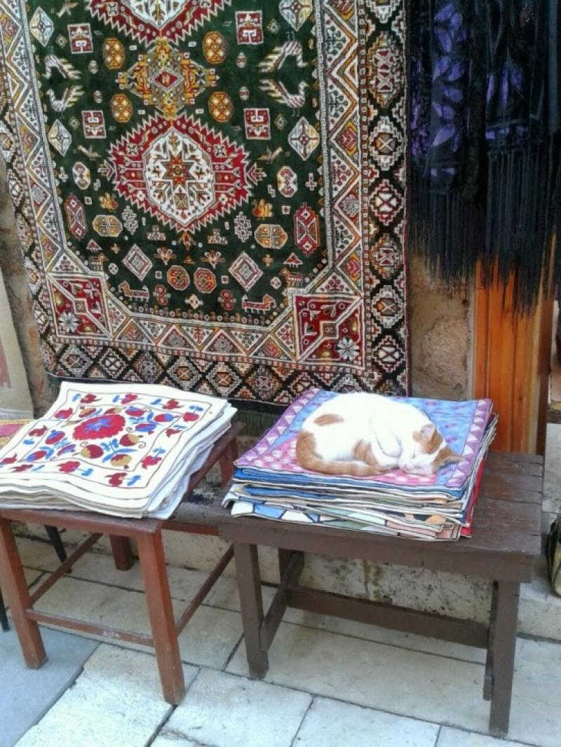 Dükkanların sevimli misafirleri var. Ürünlerle öyle bütünleşmişler ki hiç yadırgamıyorsunuz :)