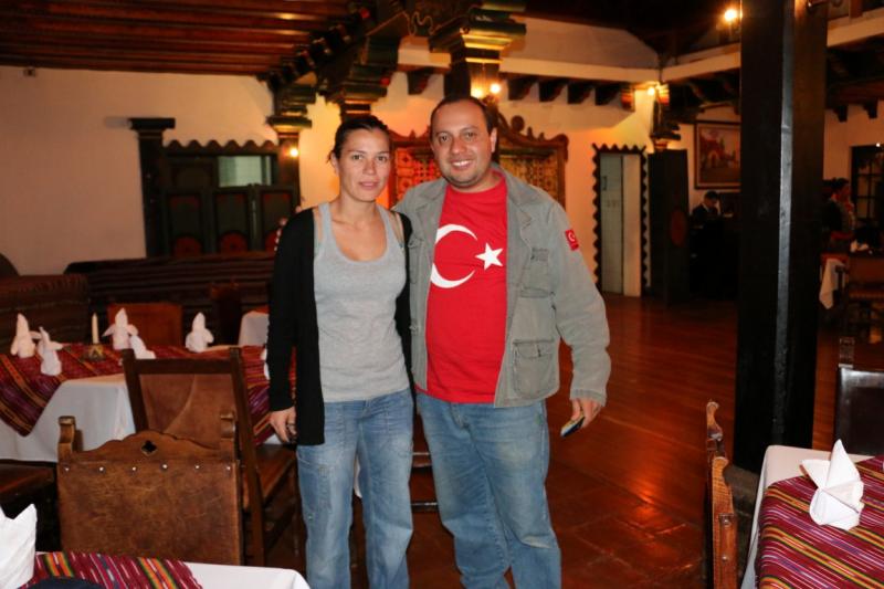 Yan masada oturan kişiyi önce Türk zannettik. Çünkü üzerinde Ay yıldızlı bayrağımızı taşıyan tişört vardı. Ancak biraz konuşunca anladık ki bu beyefendi sadece Türkiye’ye şık bir Guatemala vatandaşı.