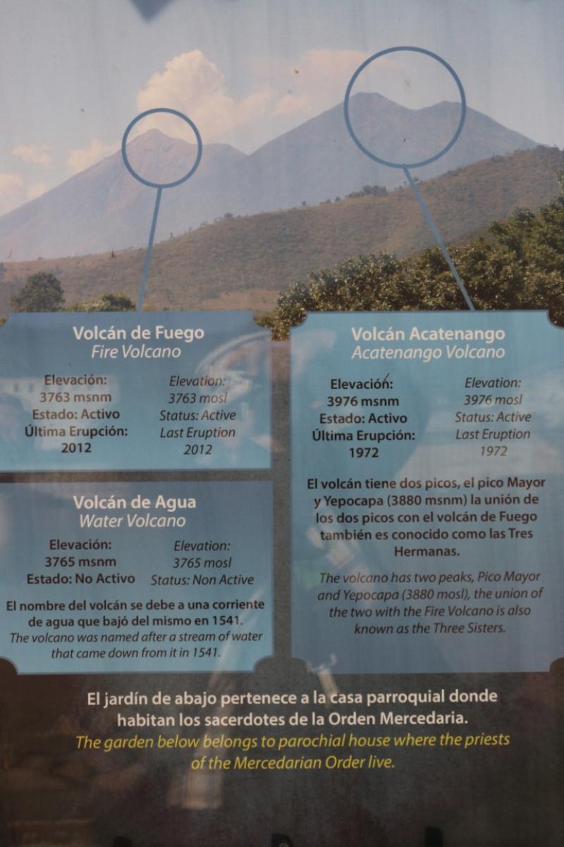 Kentin çevresinde 3 tane önemli volkan var; bunlardan biri Volcan de Fuego yani ateş volkanı, diğeri Volcan de Aqua yani su volkanı, bir diğeri ise Volcan Acatenango. Bu volkanlardan en son patlayan 2012 senesinde patlamış ve halen aktif. Volcan Acatenango da aktif olduğu için zaten bu bölgeye isteseler de çok katlı binalar yapamıyorlar.
