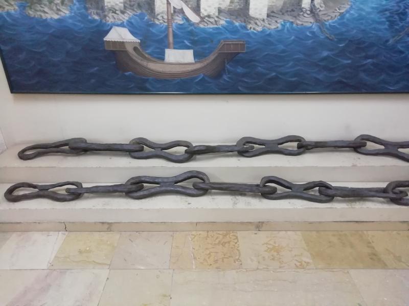 Yine bu katta Galata Kulesi'ne ait olan eski bir çan ve İstanbul’un Fethi sırasında Haliç’e bağlanan zincir de bulunuyor. Zincirin hemen yan tarafında ise üzerinde DARPHANE yazan bir bölüm var. Bu kısımda Osmanlı Devleti'ne ait sikkeleri; artık kullanmadığımız eski 5 lira, 1 lira gibi paralarımızı gördük.