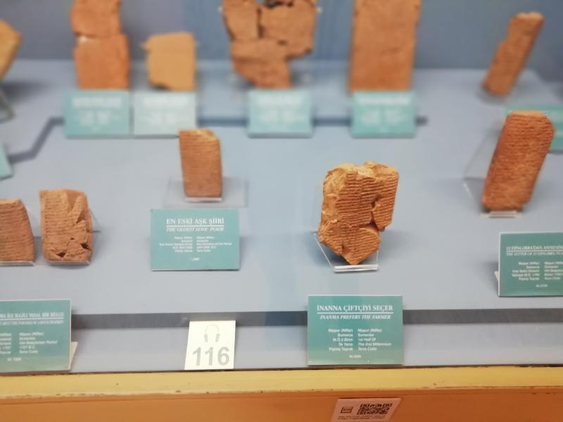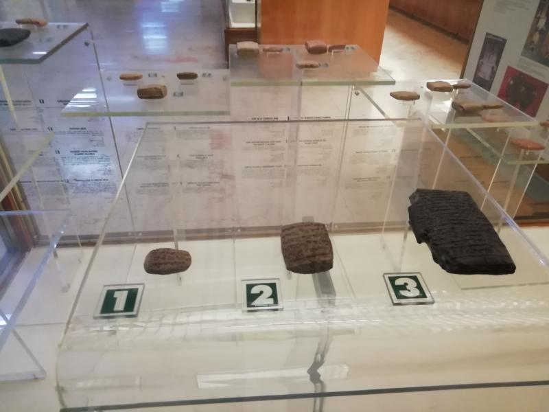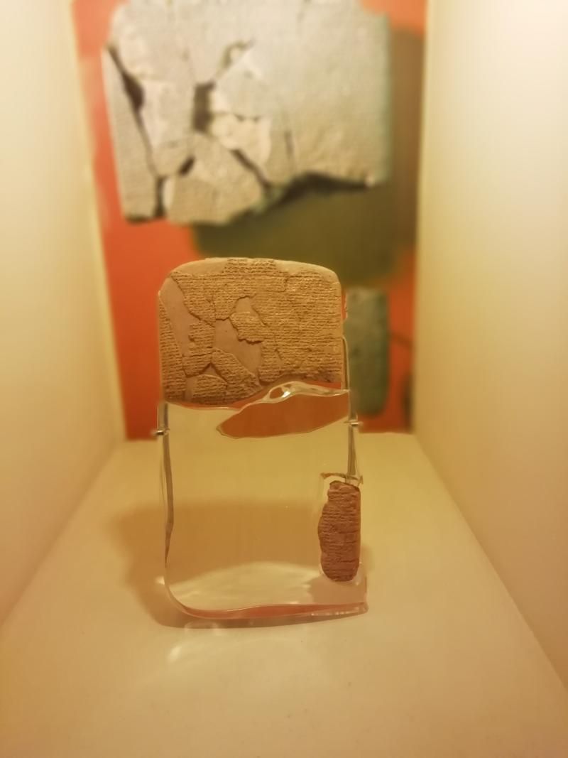 Bu kısımdan sonra ikinci kata çıkıyoruz, bu katta bir zamanlar Anadolu’da yaşamış olan birçok uygarlığa ait olan kalıntıları görüyoruz. Merdivenin hemen karşısında bulunan odada MÖ 750 yıllarında Eskişehir, Afyon, Kütahya bölgelerinde yaşamış olan Friglere ait buluntuları gördük. Truva’da yapılan kazılarda çıkan buluntular katmanlara göre ayrılmış olarak sergileniyor. Bu katta bence en ilginç bölüm çeşitli çivi yazılarının sergilendiği kısım. Aynı zamanda hayvanlara dağıtılan yem listesi, dağıtılan ekmek listesi, asker yeminleri, kralların yıllığı, Hitit yasalarının bulunduğu tabletler de sergileniyor.