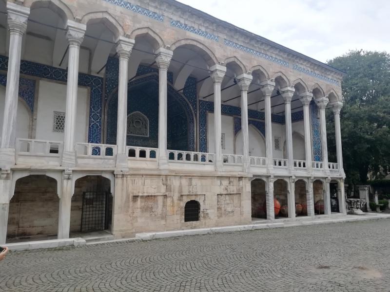 Ana binadaki turumuzu tamamladıktan sonra hemen karşısında bulunan Çinili Köşk'e giriyoruz. Binanın içinde ve dışında duvarlarda çok güzel çini kaplamalar var. Burada İznik, Çanakkale, Kütahya’da yapılmış 12. yüzyılın sonundan başlayarak 20. yüzyıla kadar uzanan eserler karşımıza çıkıyor.
