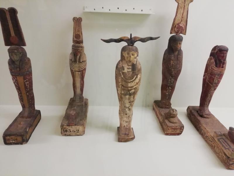Aslında müze kapısından girdiğimizde ilk bina Eski Şark Eserleri Müzesi; ancak biz burayı en sona bırakıyoruz. Bu müzede Mısırlılara ait güneş saati, tanrı heykelcikleri, papirüs kağıdında mısır hiyeroglif yazısı örneği, uşepti denilen küçük heykelcikler bulunuyor. Uşeptiler ikinci hayatta ölünün yapması gereken zor işleri onun yerine yapacağına inanılan, mezara ölü ile beraber koyulan heykelcikler. Mısır bölümünde ilgi çekici eserlerden birisi ise camekanın ardında bir lahit ve içinde bulunan mumya.