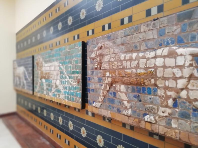 Mısır eserlerini bitirdikten sonra eskiden Babil Tören Yolu'nda bulunan Tanrıça İştar’ın kutsal hayvanı olan aslanın betimlendiği kabartmaları görüyoruz.