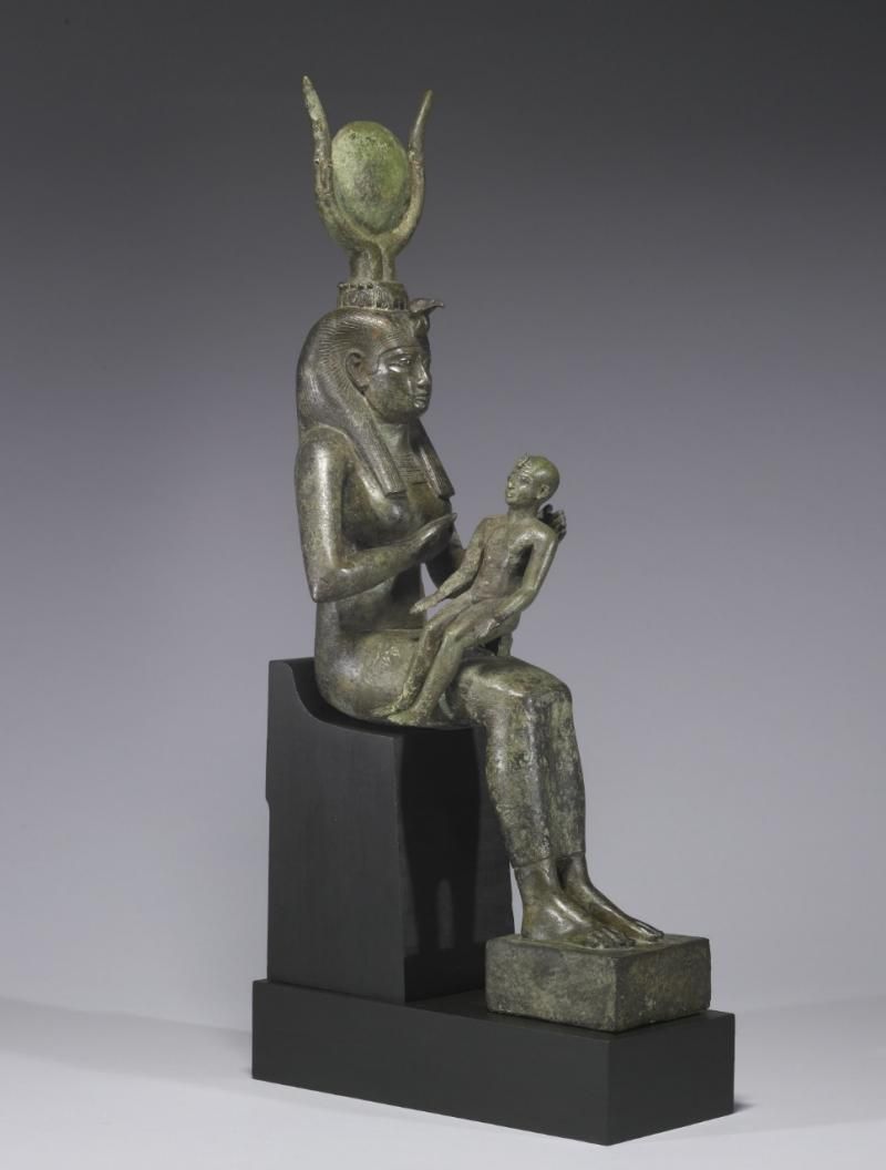 HORUS’U EMZİREN İSİS. Museo Egiziano, Vatikan. Taş. MÖ 1. yüzyıl. İsis’in kafasındaki boynuzlu başlık, onun tanrısallığını simgelemektedir ve genellikle oğlu Horus’u emzirirken betimlenmiştir. Bu imgeler Hıristiyan ikonografisinin gelişimi için bir alt yapı oluşturmuştur.