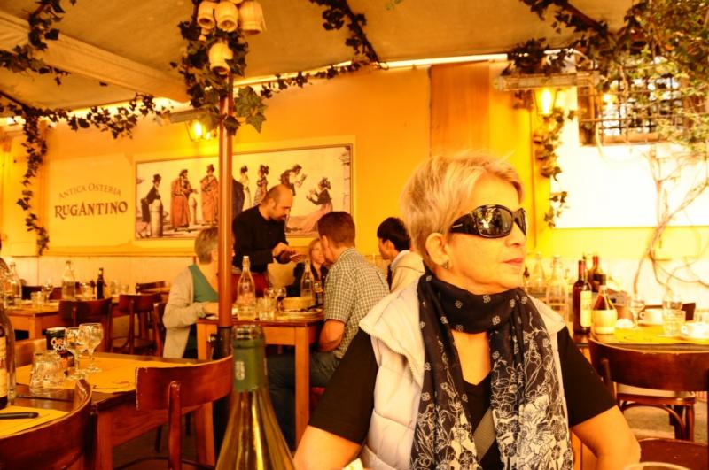 Palatino Köprüsü’nden nehrin karşı tarafına geçtik ve Lungeretta (Via de la Lungeretta) Caddesi’nde sokak aralarında dolanarak keşfettiğimiz Rugantino (Antica Österia) isimli restoranda yemek için İtalyan usulü makarna ile yine İtalyan beyaz şaraplarından birini tercih ettik. İşte size Roma’daki lezzet duraklarından biri. Yerel ve sempatik mekanlar her zaman benim favorim olmuştur, yolunuz bu tarafa düşerse tavsiye ederim.