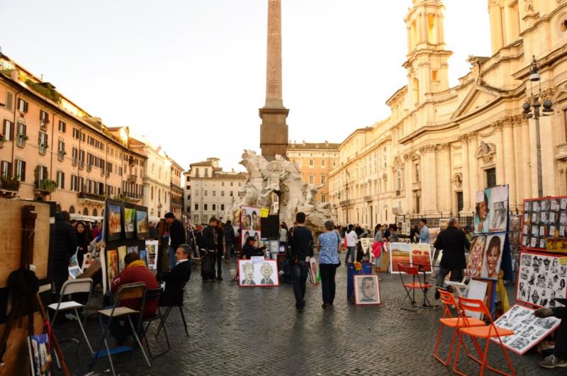 Bu kısmı tamamladıktan sonra Ponte Sisto isimli köprüden karşı tarafa Campo De Fiori’ye geçtik. Köprüden geçtikten sonra iç bölgeye kuzeye doğru ilerledik ve Roma’nın en çok beğendiğim alanlarından biri olan Piazzo Navona Meydanı karşıladı bizi.