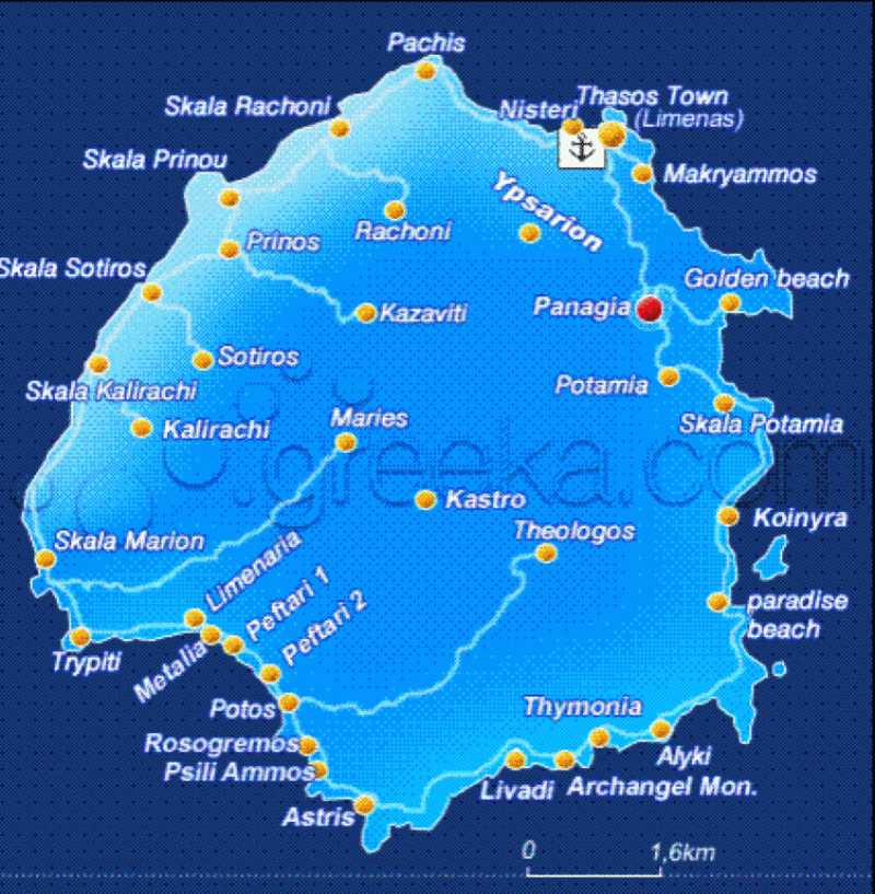 Thassos denince akla Marble Beach geliyor. Buradan mermer çıkıyor ve mermer taşları nedeni ile bembeyaz bir denizi var. Yolunun çok kötü bir yol olduğunu taksilerin bile gitmediğini öğreniyorum.