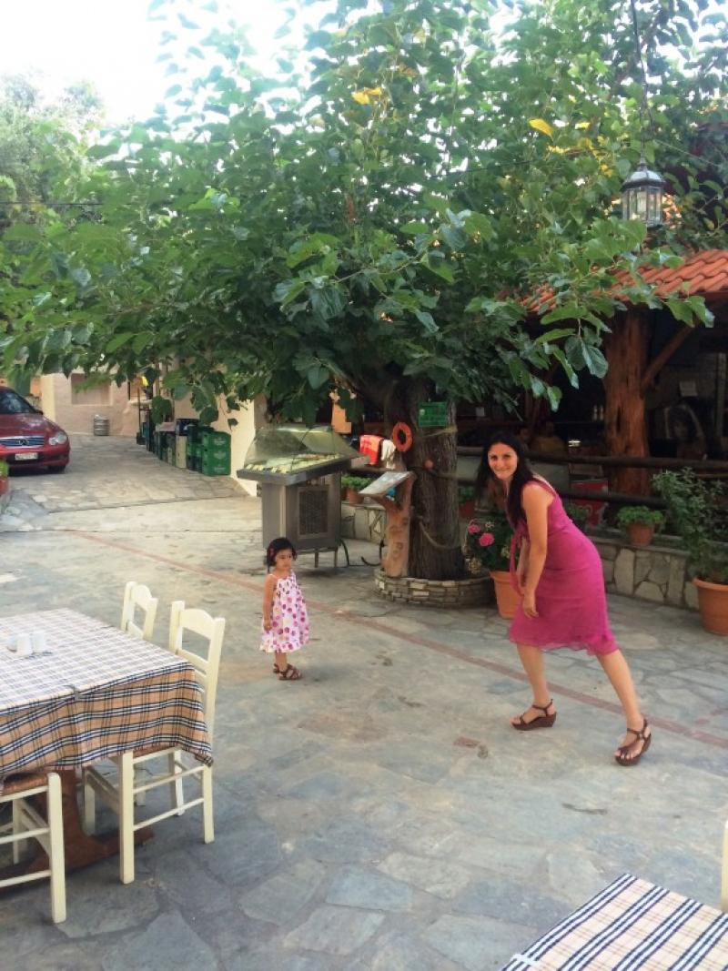 Yolda ilerlerken bu cenneti gördük. Burada konaklayalım dedik. Sahibi Yorgos diye biri. 6 odalı bir otele çevirmiş binayı. Aşağı kısımda taverna var, 5 metre ötende bu deniz.