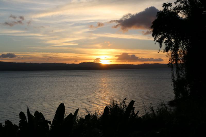 Arenal Gölü’ne parallel giderken yavaş yavaş güneş batıyor. Ortaya çıkan manzaralar çok etkileyici. Bu arada Arenal Gölü sörf için dünyadaki ilk 10 içinde gösteriliyormuş.