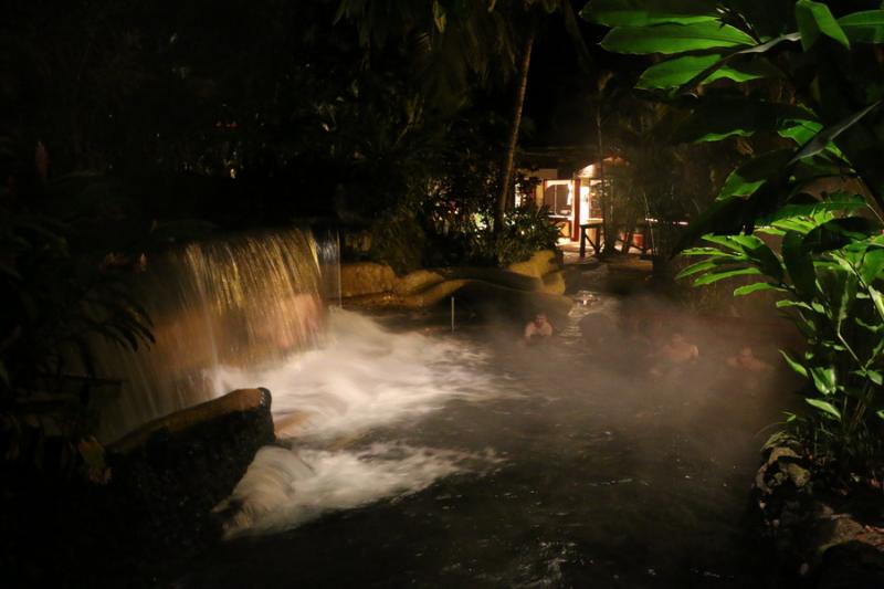 Artık Arenal Volkanı’nın eteklerindeyiz. Bu bölgede volkanın ısıttığı yer altı sularından faydalanan birçok konaklama tesisleri var. Aralarında en ünlüsü ise Tabacon Spa ya da Tabacon Sıcak Su Kaynakları. Buradaki kaplıca tesisleri geceyarısına kadar açık. Çok sayıda doğal havuz var.