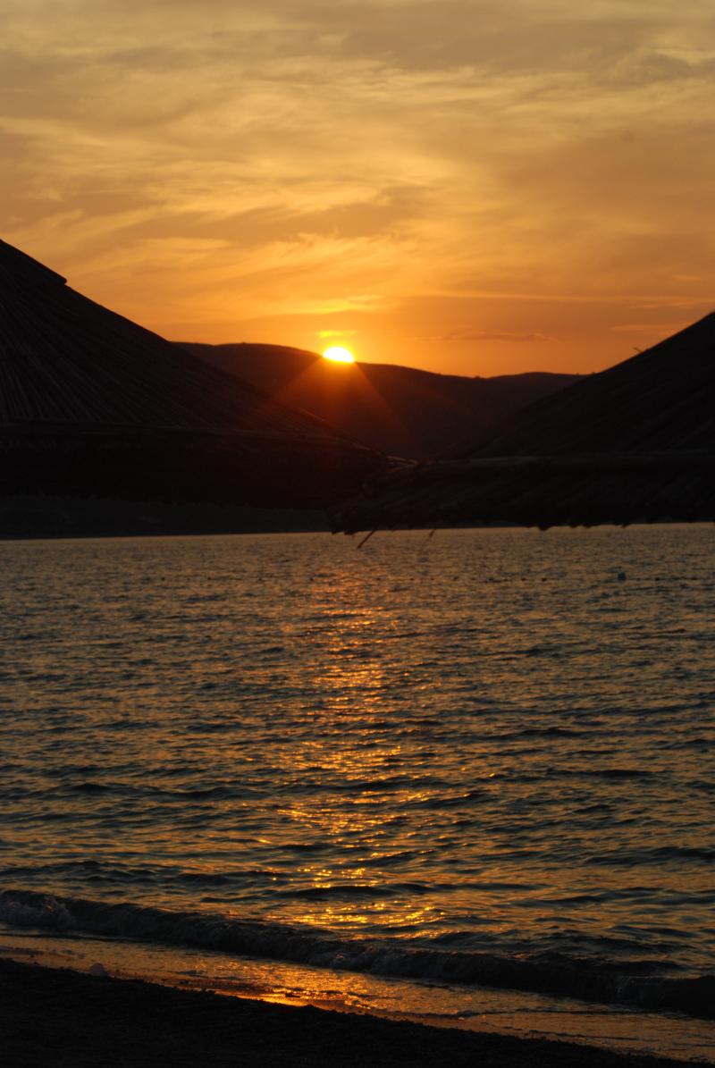 Orikum’dan daha güneye inerken daha önce bahsettiğim tehlikeli yol sizi bekliyor. 2.044 metre yüksekliğinde olan Çika Dağı’nın virajlı yollarını tırmanıp indikten sonra varacağınız yer muhteşem, yaklaşık 2,5 günümüzü geçirdiğimiz Dhermi Plajı’na bu sayede ulaştık, o yollara değer yani, sakın tehlikeli deyip pes etmeyin :) Dhermi Plajı’na inmeden önce yolunuzun üzerinde bulunan Kondraq’da bulunan Barba Niko Furre Buke’den böreklerinizi almayı da ihmal etmeyin. Dhermi Plajı’nda şezlongu ile şemsiyesini kullandığımız Pastarella´dan gayet memnun kaldık, ne oturduğunuz gibi para toplamak için hemen dibinizde bitiyorlar ne de gün içinde çantanızdan çıkardığınız yiyeceklere laf ediyorlar. İki şezlong ve bir şemsiye ücreti ise toplam 700 leke. Denizi ise tek kelimeyle mükemmel… Dönüş yolunda Çika Dağı’nı tırmandığınızda gün batımını izleyebilirsiniz.