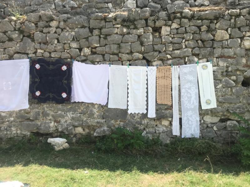 Daha sonra buradan çıkıp kalenin içinde yürürken bir teyze yolumuzu kesiyor ve bizi evine davet ediyor. Adı Violeta. Bize kendi yaptığı erik ve karpuz reçellerinden bize ikram ettikten sonra yanına bir de Türk kahvesi yapıyor. Burada fark ettiğim bir şey var, şekersiz de isteseniz sanki Arnavutluk’taki kahveler biraz şekerli geliyor. Ya da bana mı öyle geldi, bilmiyorum. Violeta’nın güzel bahçesinde biraz oturduktan sonra buradan çıkıp kalenin yukarılarına doğru ilerliyoruz.