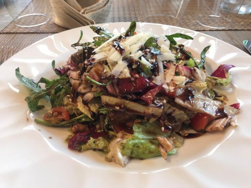 Güzel Berat Kalesi’ni gezdikten sonra çok yoruluyoruz ve artık bir yemeğin vakti geldi, ama ne yemek… Arnavutluk’ta sadece 2 günde yediklerimden sayfalarca yazı çıkabilir. Muhteşem Arnavutluk yemekleri için ilk durağımız Desaret. Burada yediğimiz her şey o kadar güzel ki! Önce herkese birer salata geliyor. Cevizli, nar ekşili, susamlı ve peynirli bu salata tek başına zaten bir öğün.