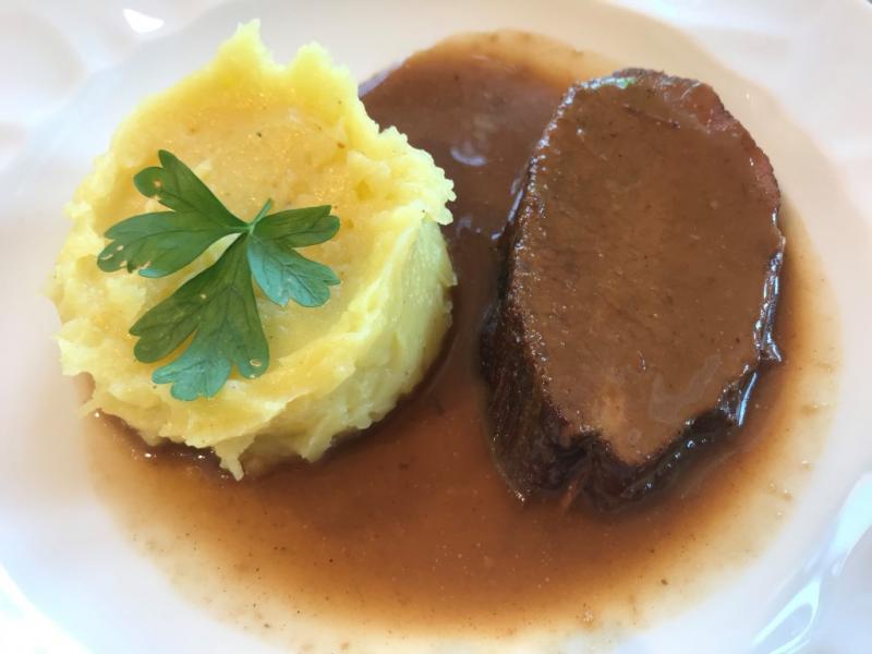 Muhteşem soslu bir rosto ile yanında patates püresi geliyor. Tamam diyorum, bu son herhalde.