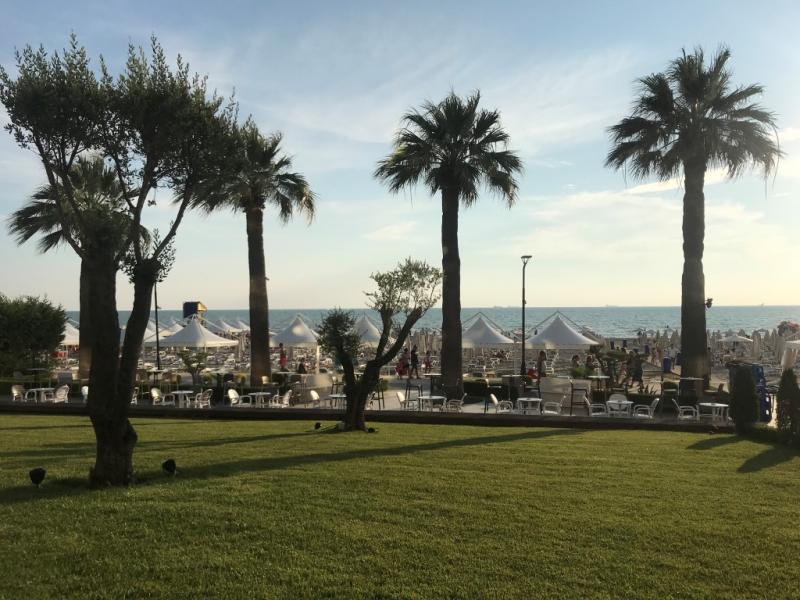 Bu kısa yürüyüşten sonra arabamıza binerek Durres’e gitmek üzere yola çıkıyoruz. Ülkenin Tiran’dan sonra en büyük şehri olan Durres bir sahil şehri. Aslında burada gezilecek amfi tiyatro, Kral Zog Villası gibi güzel yerler var ancak biz baya yorgunuz. Bu yüzden buranın en güzel otellerinden otel PremiumBeach Hotel’in sahiline giriyoruz. Koskocaman bir sahili olan otel tertemiz, çalışanlar çok ilgili. Otelde soğuk kahvelerimizi içip dinlenirken güneş yavaş yavaş batmaya başlıyor ve artık bizim de buradan kalkıp akşam yemeğine gitme vaktimiz geliyor.