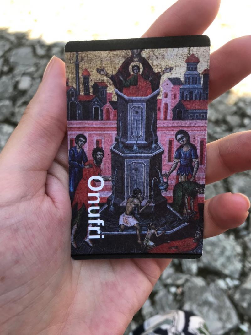 Kilisenin adını aldığı Onufri’den bahsedeyim biraz. Onufri, Ortodoks bir ikon ressamı. Bizans sonrası ve Venedik etkileri resimlerinde görülüyor. 16. yüzyılın başlarında Berat’ta doğduğu tahmin ediliyor. Onufri’nin resimlerindeki bir özelliği, Ortodoks inancına ters düşüyor aslında çünkü kendisi resimlerinde yüzleri çok detaylı yapıyor. Kişileri resimlerinde çok gerçekçi bir şekilde yansıtıyor. Zamanının kurallarını da bu şekilde yıkıyor. İkonlarda pembe rengini kullanan ilk ressam aynı zamanda. Siz de Onufri’nin muhteşem detayları olan ikonlarını buraya gelirseniz görebilirsiniz.