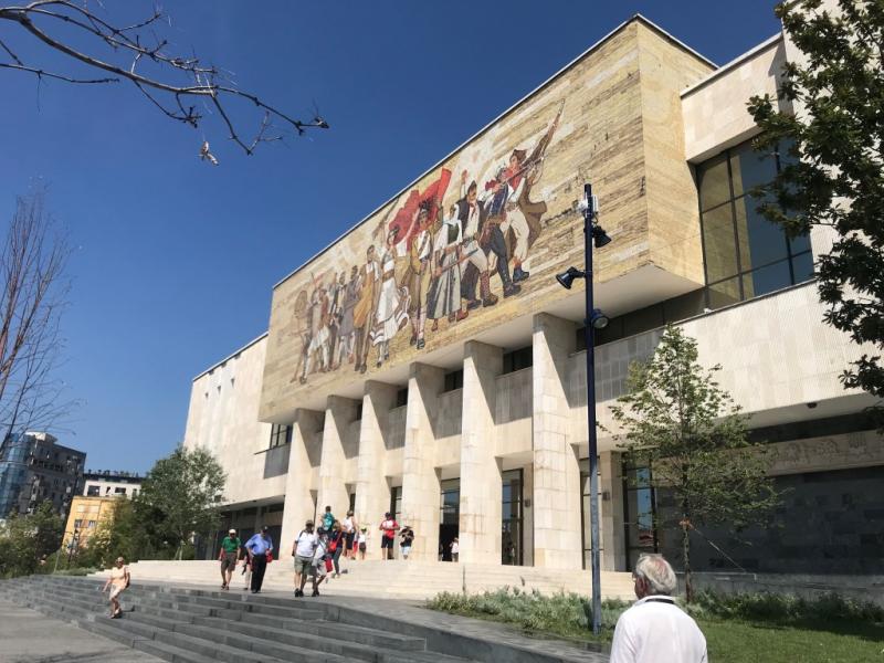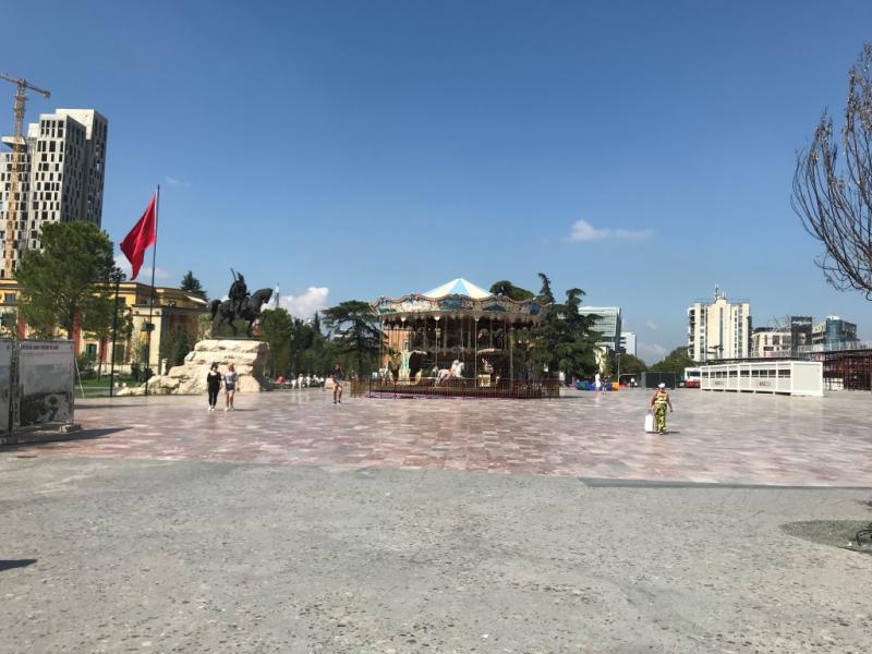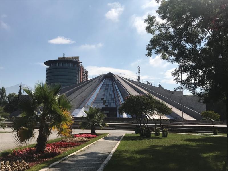 Bugün Arnavutluk’ta ikinci günümüz, gezimize Tiran’dan başlıyoruz. Otelimiz Rogner Hotel Tirana’nın da üzerinde bulunduğu Deshmoret e Kombit Bulvarı’nda yürüyüşe geçiyoruz. Burada yürürken rehberimizden bilgiler alıyoruz. Yürürken sağımızda gördüğümüz şu anda boş olan yapı gözümüze çarpıyor ve ne olduğunu soruyoruz, burası Mussolini’nin zamanında yapılmış. Eskiden beyaz mermerden olan yapıda toplantılar, konserler yapılıyormuş Mussolini ölünce mozole olarak kullanılması önerilmiş ancak ailesi istememiş, daha sonra hayatını anlatan bir müze yapmışlar. Şu anda boş duran yapının akıbeti bilinmiyormuş, rehberimiz belki sergi alanı olarak kullanılır belki de konser alanı olur ancak belli değil diyor.