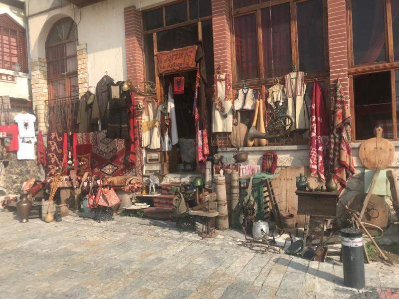 Daha sonra buradaki 1837 tarihli Osmanlı evini görüyoruz. Tiran zamanında bu tarz evler ile doluymuş ancak günümüzde örneklerinden sadece bu ev kalmış. Beyaz boyalı eve giremiyoruz ancak dışarıdan görüyoruz. Bu ev Toptani ailesininmiş. Bu aile zamanının en büyük iş adamlarının ailesiymiş, hatta bir de alışveriş merkezleri var Tiran’da.