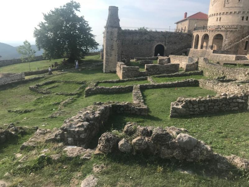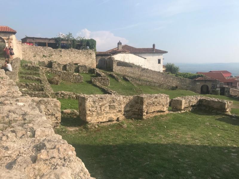 Kruje Kalesi, deniz seviyesinden 680 metre yükseklikte bir dağda yer alıyor. Bu yüzden de buraya geliş yolu dediğim gibi virajlı, çünkü aslında dağa çıkıyorsunuz. Günümüzde kalenin kalıntılarının büyük bir kısmını görebiliyorsunuz. Gözetleme kulesi de bunlardan biri. Biz de kalenin içine giriyor ve oldukça kaygan taş yollardan ine çıka gidiyoruz.