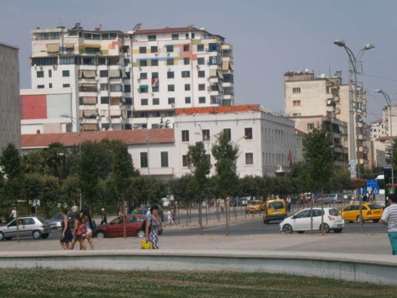 Meydanda Tiran Üniversitesi binasını da görüyoruz; ama burası ana bina mıdır, bir bilgi alamıyoruz. Alışveriş kültürü yeni yeni gelişmektedir: Galeria ve City Park Arena önemli alışveriş merkezleridir. Görmediğimiz tek yer Kültür Merkezi/Piramida. Burası Enver Hoca için mezar diye tasarlanmış ancak bugün gençlerin üzerinde kay kay yaptıkları, atıl bir yer olduğunu bildiğimizden eksiğimiz yok diyebiliriz.