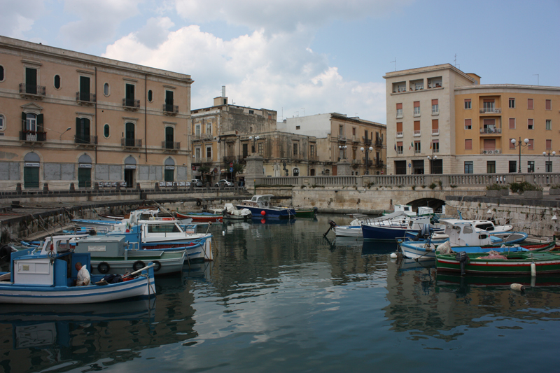 Siracusa'nın merkezi Ortigia adası üzerinde. Bu ada Siracusa ana karadan küçük bir köprü ile ayrılıyor. Bu köprü ve civarında çok sayıda balıkçı tekneleri var.