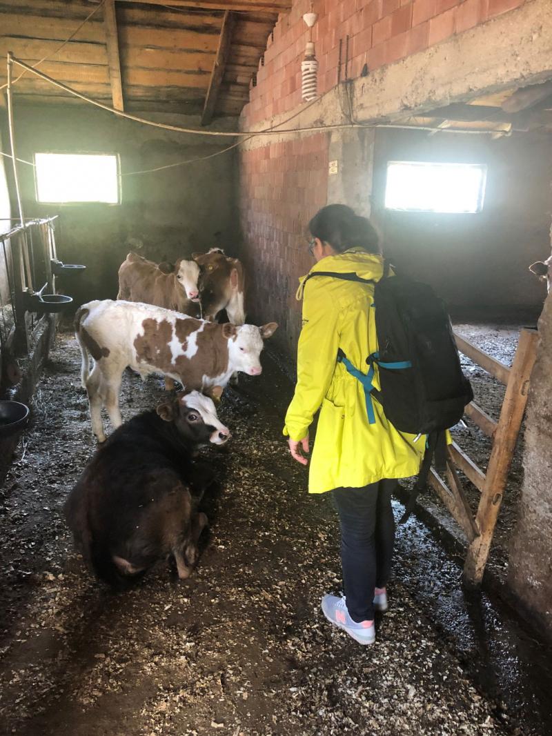 Ardından köydeki teyzelerden biri yle ahıra girdik. Bize ineklerini, buzağılarını tanıttı. Hepsinin bir adı var: Aybike, Bulut,...