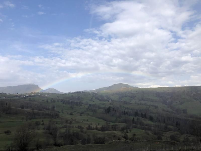 Sabah güneş yavaş yavaş belirirken etraf yeşillenmeye başladı. Biz uyandık şimdi de doğanın uyanışına tanıklık ediyoruz resmen. Kısa süreli yağmur bir an için “eyvah” dedirtse de hemen arkasından çıkan gökkuşağı günün sürprizi oldu.