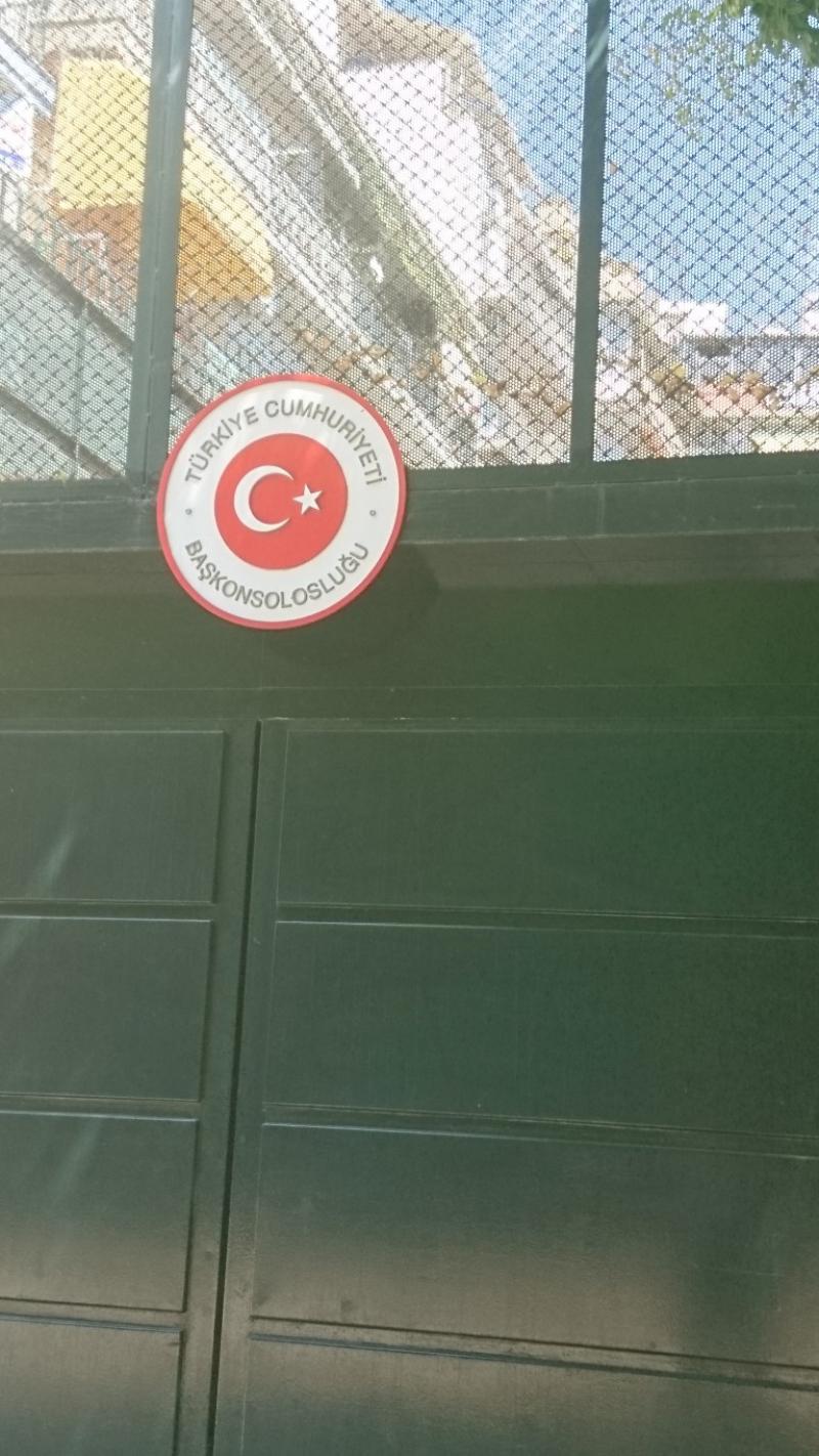 T.C. Selanik Başkonsolosluğu, evin hemen yanında bulunuyor. Caddeye bakan kapıdan girişi var.