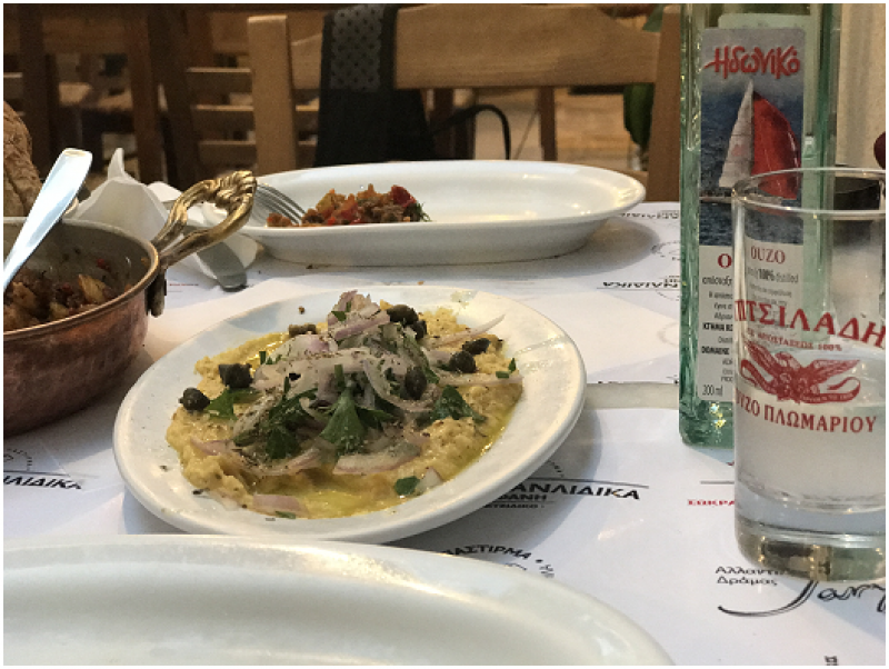 Bu arada bir bilgi paylaşmak istiyorum. Yunanistan'da balık ve deniz ürünlerini genelde az kızartıyorlar. Siz peşin peşin fazla kızarmış diye söylerseniz, bizim damak tadımıza daha uygun oluyor. Bir de 'Greek salatası' meşhur buraların. Roka, domates ve feta peynirinden ve bol zeytinyağından oluşuyor. Genelde temmuz ayında sardalya balığını öneriyorlar, onlarda da ismi aynı; sardaliya.