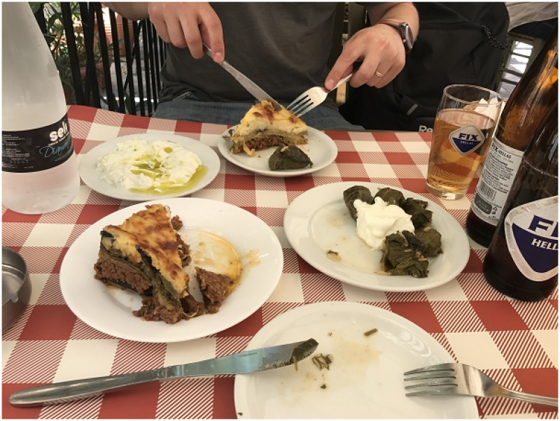 Psiri bölgesinde yürüyerek gidebileceğiz, muhteşem bir restoran burası; salaş, bir o kadar lezzetli, kaliteli ve fiyatları uygun. 24 Euro'ya iki bira, bir pazı, bir dolma, bir musakka ve caciki (bu arada bol bol caciki göreceksiniz; kısacası cacık ama bizimkiler gibi sulu değil) söyledik... Böyle saydığımda az gibi geldi ama inanın porsiyonlar çok fazlaydı. Nikita'da muhakkak pazının ve musakkanın tadına bakmanız lazım, elbette bizimkilerden farklı :)