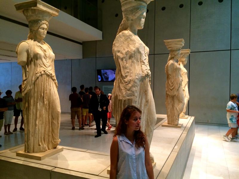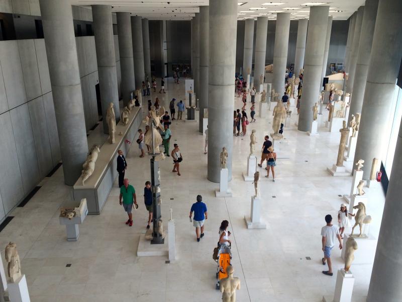 Buradan çıkınca muhakkak gidilmesi gereken yer Akropolis Müzesi. Biz gittiğimizde hiç sıra yoktu kolayca aldık biletimizi. Modern yapı çevresiyle tezat oluştursa da oldukça güzel. Tarihi kalıntıların üzerine yapılmış bu müzenin cam tabanından kalıntıları da görmek mümkün. 3 katlı bu yapı akropolise tırmanma hissi verilerek yapılmış sanki. Müze planında hangi katta hangi eserlerin olduğu açıklanıyor. Girişte akropolisin zaman içindeki gelişimi ile ilgili maketler var. En üst kat ise en etkileyici yer. Çepeçevre Parthenon’un çatısında yer alan heykel ve resimlerden kalanlar sergileniyor. Bir de Parthenon’un tarihini anlatan bir video gösterim yeri var. Akropolis manzarası ile birlikte katı dolaştığınızda sanki Parthenon'un etrafını dolaşmışsınız tadını alıyorsunuz.