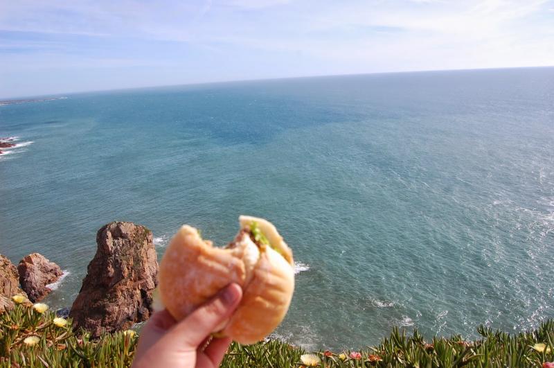Öyle ki ben karşı kıyıdaki Amerika'ya selam çakmak ve "Sırada sen varsın" demek için yanımda hamburgerimi bile götürdüm (Yazar burada aslında Sintra'dan kalkan otobüse yetişmeye çalışırken açlığını bastırmak için en yakın ve en ucuz mekândaki hamburgeri alıp paket yaptırdığını ve açlıktan bayılmamak için kayalıklar üzerinde yediği gerçeğini saklamaya çalışıyor!).