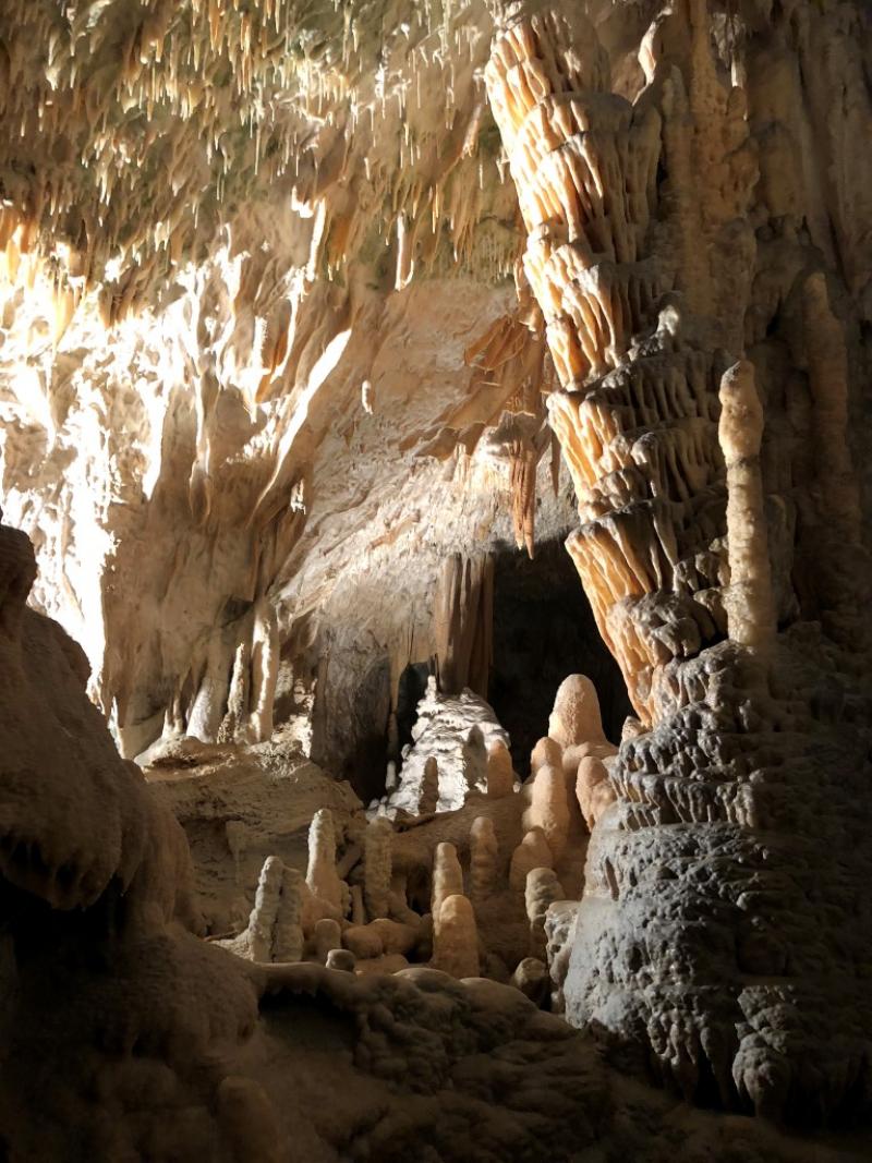 Yukarı baktığınızda tavandan yere sarkan yüzlerce hatta binlerce sarkıt görüyorsunuz. Kimi incecik ve sık aralıklı ve bunlara spagetti diyorlar, parmak kalınlığından daha az gibi düşünün, ama kimileri de var ki Dolmabahçe’deki dev avizeler kadar büyük, ihtişamlı sarkıtlar. Ha bu arada tabii ki mağara içinde göreceğiniz galerilerin boyutları da akıl almaz şekilde. Kimi odalar (Galeriler) rahatlıkla birkaç apartmanın sığacağı kadar büyük boşluklardı.