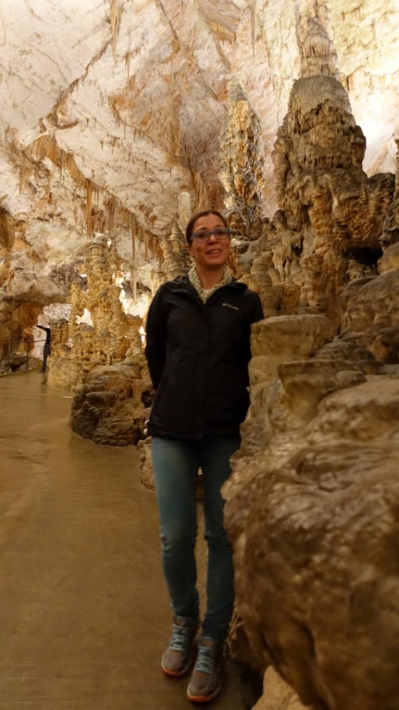 Slovenya’da artık birkaç gün beraber geçirdiğimiz için epey de kanka olduğumuz rehberimiz Alesh bizi mağara girişine kadar getirdi. Orada bize ev sahipliği yapan turizm ofisi yetkilileriyle tanıştık ve vakit kaybetmeden bizi mağaranın içine aldılar. Böyle “mağara” dediğim içini girilip çıkılan ufak bir yer zannetmeyin sakın. Yürüyebileceğiniz ve ilginç oluşumların olduğu yere kadar gitmek için mağaranın içinde trene biniyorsunuz çünkü yol çok uzun :).