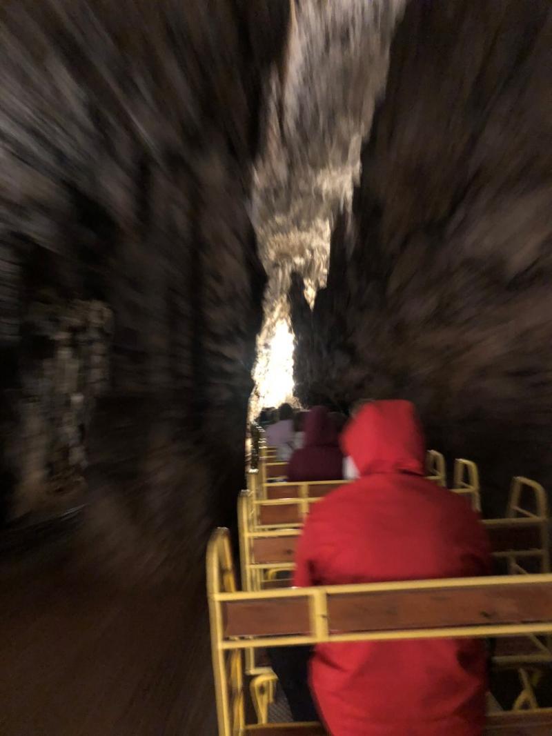 İlk trene bindiğinizde biraz lunapark havası yaşıyorsunuz. Sanki birazdan dev bir yokuştan aşağı kayan bir roller coaster’da gibi. Aslında tren hiç de yavaş sayılmaz. Karstik oluşumların, sarkıtların altından ve duvarların yanında oldukça yüksek bir hızla geçiyor. Açıkçası hiç korkmadım desem yalan olur, biraz korktum. Öyle fotoğraf çekeyim, sağa sola sarkayım derseniz bir duvar parçasında eliniz kolunuz patlayabilir. Hatta boyunuz biraz uzuncaysa dikkat edin kafanızı eğmeniz gereken yerler bile olabilir. Ne de olsa trendeyim diye pek güvenmeyin yani.