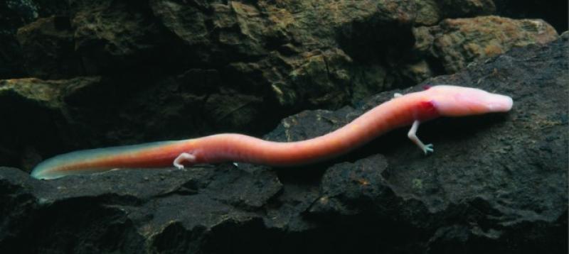 Dönüşteki tren istasyonuna yaklaştığınızda ise bir sürpriz daha bekliyor sizi. Yolun ortasına konmuş dev akvaryumlarda buraya özel bir semender yaşıyor. Mağara semenderi denen bu türe İngilizce koydukları isim ise insan balığı (Humanfish). Bütün bir tür albino, belki de o yüzden yalnızca mağarada yaşıyorlar. Gözleri de derisinin altında olan enteresan bir yaratık bu. Dikkatli bakınca semenderi suda görebiliyorsunuz ama ışıktan rahatsız olan bu yaratığa zarar vermemek için ortam çok karanlık ve bu yüzden de fotoğraf çekmeniz pek de mümkün değil. O yüzden mağara semenderinin fotoğrafını size internetten bulup gösteriyorum.