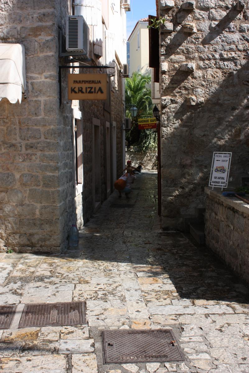 Burası tam bir yazlık mekan. Aynı Dubrovnik’te olduğu gibi burada da bir eski şehir var. Kale içi bölgesi Dubrovnik’ten daha küçük. Buraya gelmeden önce kalacak yer ayarlamamıştık. Kale içinde birkaç yere sorarak ufak ama çok temiz bir pansiyon bulduk kendimize. Çevrede çok büyük oteller yok, ama yapımı devam eden lüks oteller var. Budva otellerini iyi araştırarak kendinize en uygununu seçebilirsiniz. Önümüzdeki dönemde buranın çok ciddi bir tatil beldesi olacağı kesin. Bizim kaldığımız pansiyon, denize sıfır ve kale içinde.