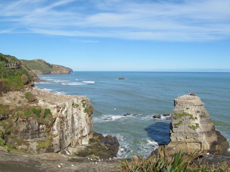 Auckland’ın batısında yer alan Muriwai Sahili, geniş kumsalı ve dev dalgalarıyla Yeni Zelandalı sörfçülerin en sevdiği sahillerden biri. Tasman Denizi kıyısındaki Muriwai Sahili'ni asıl popüler kılan şey ise bir sümsük kuşu kolonisine ev sahipliği yapması. Her yıl ağustos ve mart ayları arasında Muriwai’ye gelen sümsük kuşları, çiftleşme döneminin ardından eylül-aralık ayları arası yavrularını burada büyütüyor. 3 aylık olup uçmayı öğrenene kadar annelerinin dizinin dibinden ayrılmayan yavrular, daha sonra kışı geçirmek için Avustralya’ya göç ediyor. Pek azı geri dönmeyi başarabilse de, Muriwai sümsük kuşu kolonisindeki kuşların sayısı her dönem 2.000’e kadar çıkıyor.