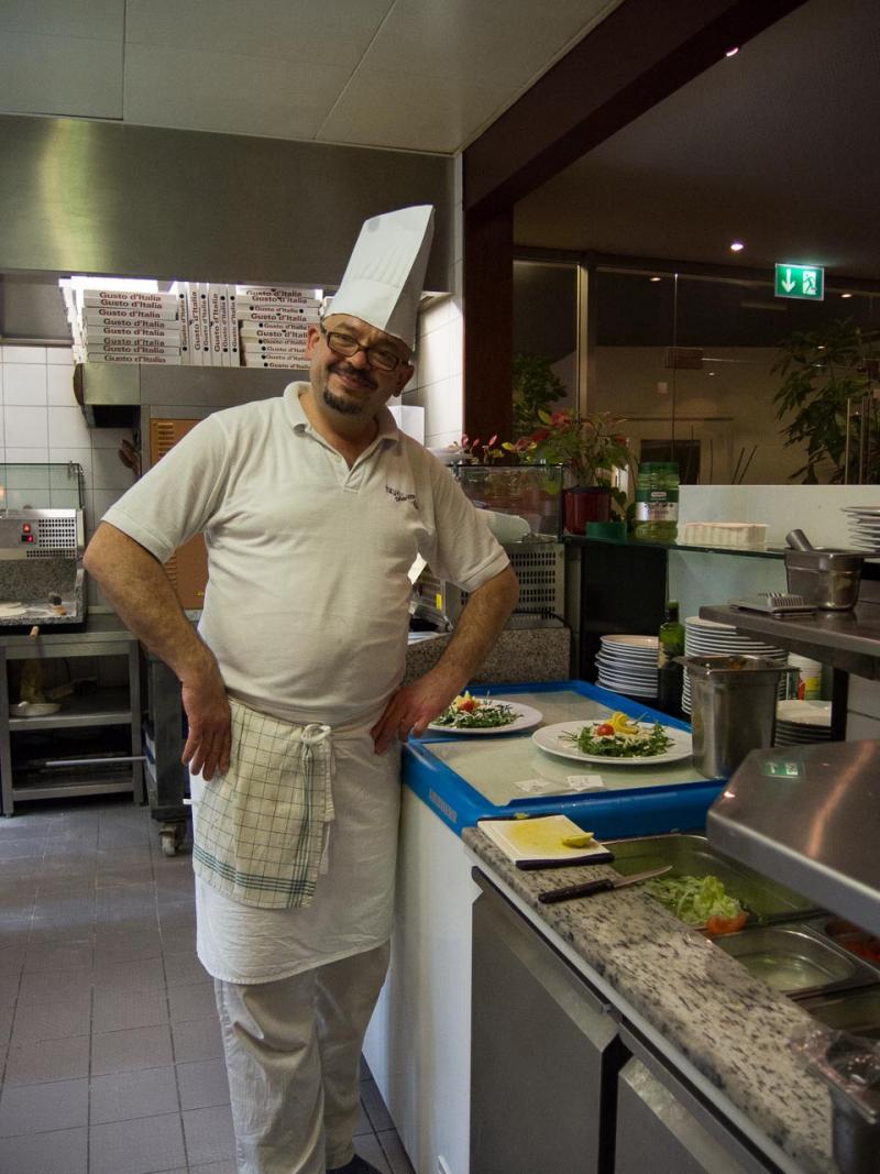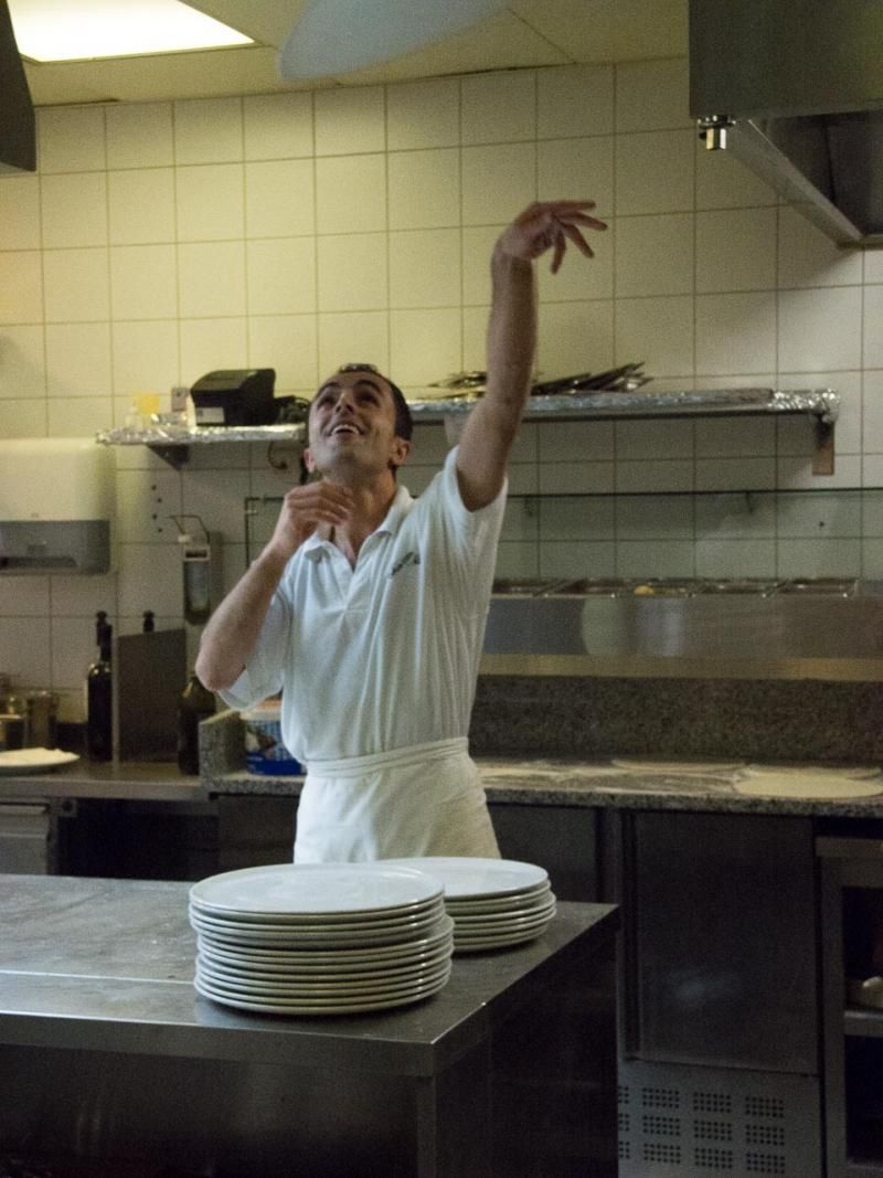 Sankt Anton, birçok Avusturya kayak kasabasına kıyasla oldukça renkli bir yer. Merkezde sürekli hareketlilik var ve oldukça çok restoran-bar seçeneği var. Her akşam bambaşka yerlerde yiyip değişik tatlar almak mümkün. Biz bir akşam İtalyan, diğer akşam Meksika, Çin ve Avusturya mutfaklarını denedik hepsi de birbirinden güzeldi. Avrupa’nın sanırım en beğendiğim özelliklerinden biri bu, en salaş yere bile yemek yemeğe gitseniz kötü bir şey yiyerek ayrılmazsınız. İlk akşam gittiğimiz İtalyan Pizzeria Dolce Vita’nın lezzetli olmama imkânı var mı? Aşçılar işlerini yaparken bu kadar keyif alıyorken…