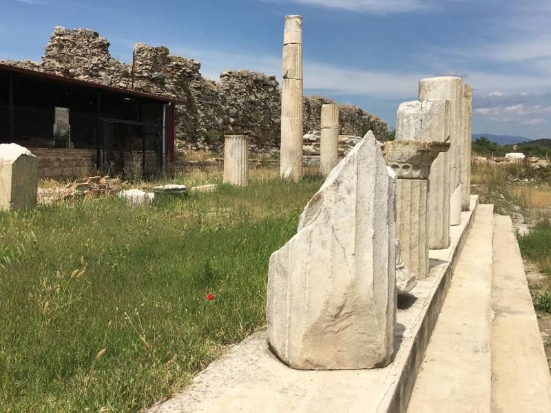 Agora: Önemli yapılarından biri, mil altında kalarak ortadan kaybolmuş. Artemis kutsal alanına giriş kutsal bir kapıdan.