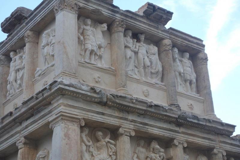 Şehri diğer antik kentlerden ayıran bir diğer yapı ise Sebasteion adıyla anılıyor. Soyunun Jül Sezar’dan geldiğini iddia eden kentin en büyük aileleri tarafından yaptırılan bu tapınak, üzerindeki mitolojik ve imparatorlarla ile ilgili kabartmalar dikkat çekiyor.