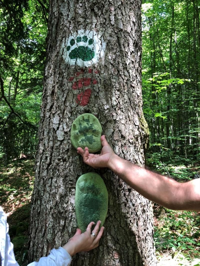 Burada bize kendi topladığı ayı ve vaşak ayak izlerinden yaptığı ayak izi kalıplarını gösterdi. Sadece bu orman bölgesinde yaklaşık 400 tane ayı olduğunu tahmin ediyorlar. Tabii bu sayı nasıl saptanıyor? Ormanda buldukları tüm ayı dışkıları laboratuvarda analiz ediliyor. Buna göre şu ana kadar yaklaşık 400 civarı farklı genetiğe sahip ayı dışkısı toplanmış.