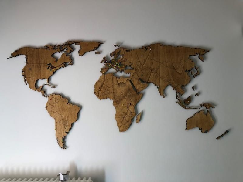 Biz burada konaklamadık ancak Petra ile buluşmaya gittiğimizde otel işletmecileri bizim için geç bir kahvaltı hazırlamıştı. Onlarla hem bölge hakkında konuştuk hem de keyifli ve organik bir kahvaltı yaptık. Ev yapımı reçeller, ballar, yoğurtlar oldukça lezzetliydi. Hostelin girişindeki ahşaptan yapılmış Dünya haritasınaysa bayıldım. Aynısından yaptırmak için bol bol fotoğrafını çektik :).