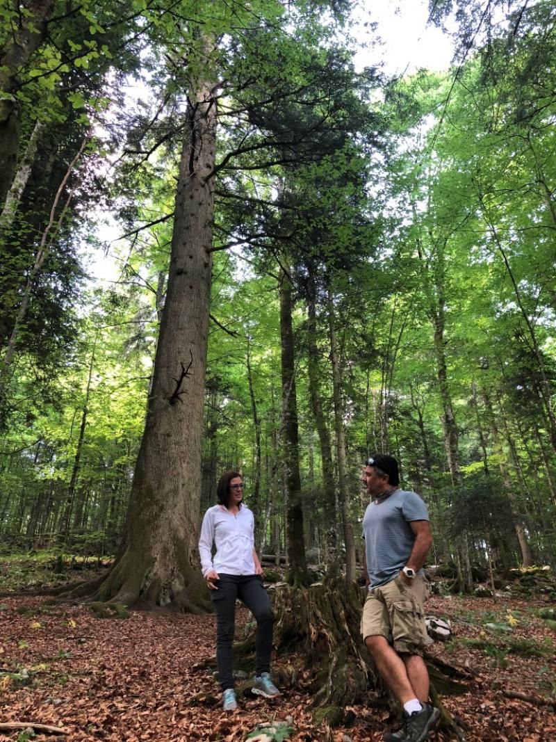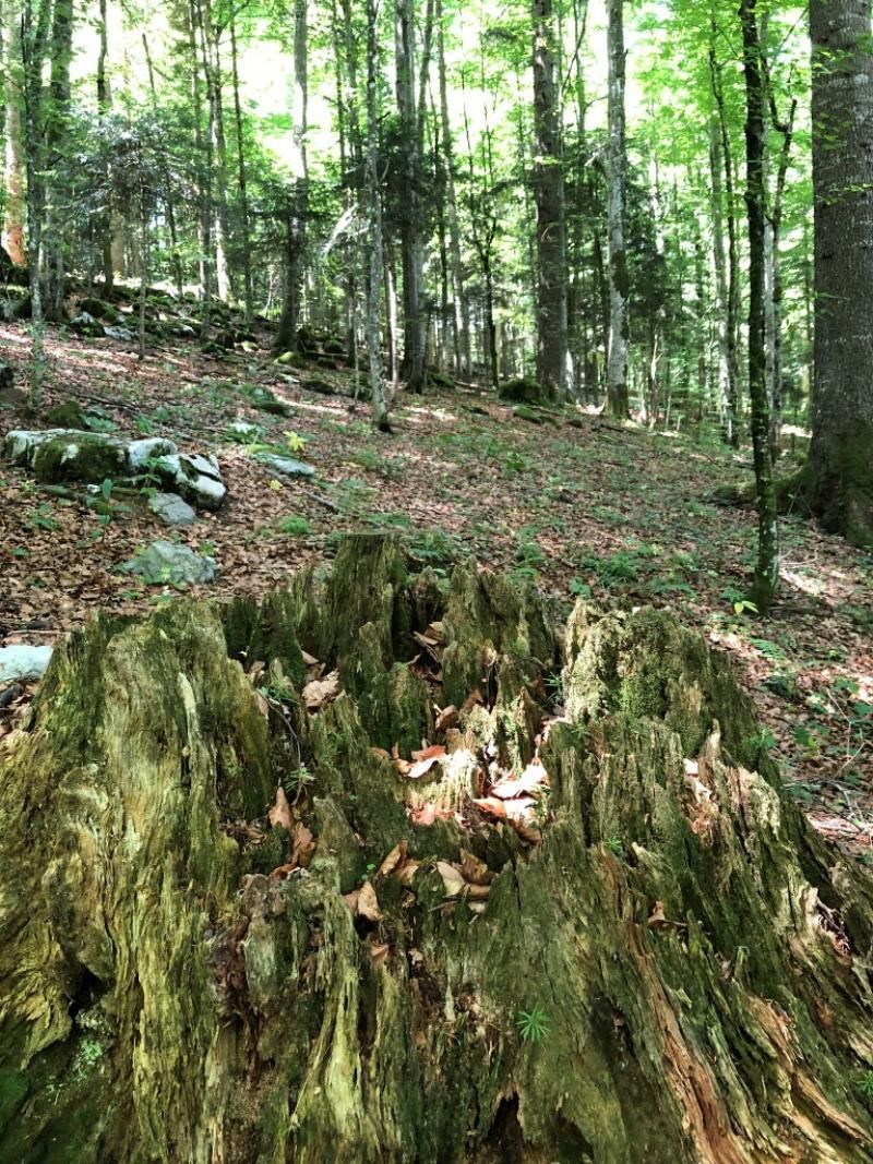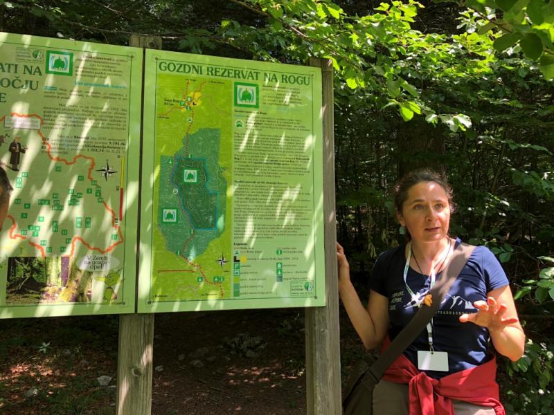 Biz kestirme olanı yaptık. Bazı yerleri yürüdük bazı yerleri araç ile geçtik. İlk olarak Slovenya’nın gizli ormanındaki Zeljnske bölgesine gittik. Burada Zeljnske Mağaraları ziyaret edilebiliyor. 20.000 yıl önce mağaranın girişinde ilk ateşi yakan Buz Çağı avcılarının olduğu tahmin ediliyormuş. Kış aylarında ziyaret edilirse, tavandan ve zeminden sarkan kırılgan buz sarkıtlarının büyüleyici ve masalsı olduğunu öğrendik ama biz mağarayı gezmedik çünkü yaz aylarında o kadar etkileyici olmadığını söylediler. Onun yerine Rog’un Kraliçesi diye bilinen 500 yaşındaki köknar ağacını ziyaret ettik.