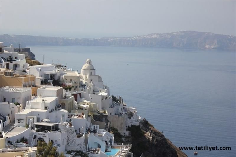 Santorini’de yapılar yaklaşık 300 metre yüksektedir. Karaya vardığınıza karşınızda dik bir yamaç göreceksiniz. Dört alternatif sizi bekliyor; taksi, teleferik, tavanway ve eşek. Eğer özel bir tur satın almadıysanız yamaç çok dik ve dolambaçlı olduğu için merkeze yürüyerek vardığınızda soluklanmanız gerekecek. Bu sebeple 5 euro karşılığında eşeklerle çıkabilirsiniz. Dönüşteyse 4 euroya teleferikle inerseniz manzara keyfini de yaşarsınız.